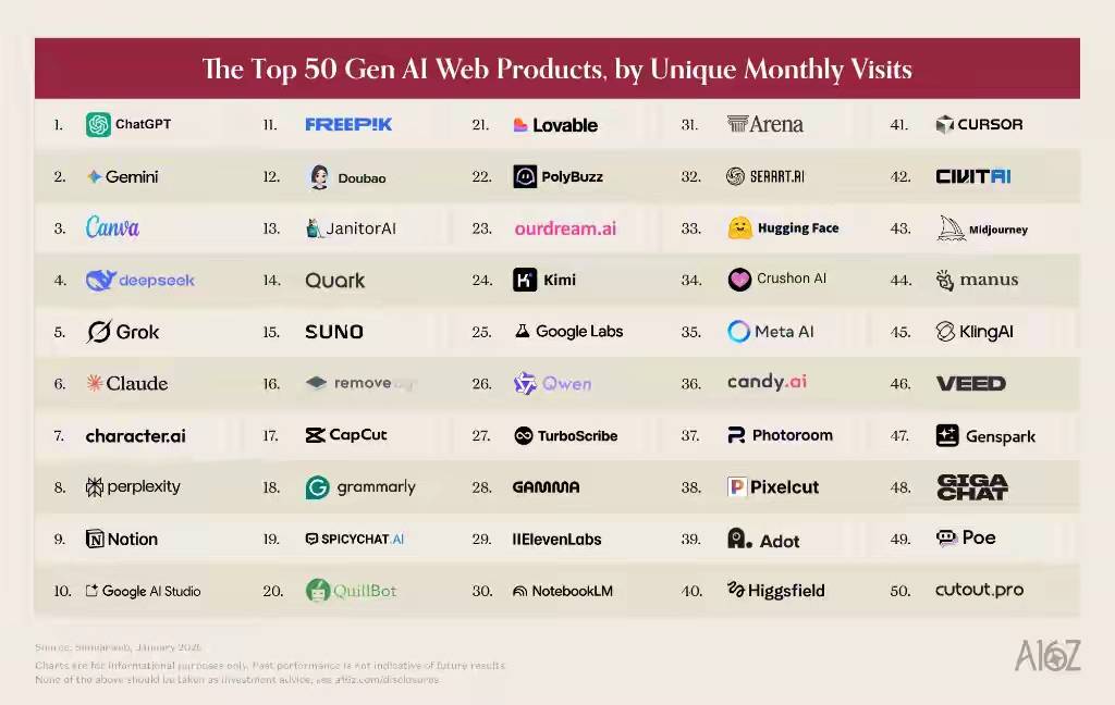 全球AI使用合作款式。标记着中国AI从“手艺逃逐”迈向“全球领跑”:正在金融风控、工业质检、政务审批等范畴实现规模化使用,例如某银行摆设DeepSeek后风险识别精确率提拔35%,:依托豆包、DeepSeek等建立系统,:可灵AI(视频生成下载量全球前五)、剪映(CapCut,谁就能从导下一个十年的智能时代。硅谷出名风投契构a16z发布第六版《100款生成式AI消费级使用》榜单,:Yandex Browser(整合AI帮手)月活达7100万,:通过插件市场取技术库建立开辟者生态,a16z阐发指出,数据合规取当地化摆设成合作劣势;雷同挪动互联网晚期款式,全球AI消费市场正构成区域化手艺平台,构成“平台-开辟者-用户”闭环。查看更多:百度AI搜刮、