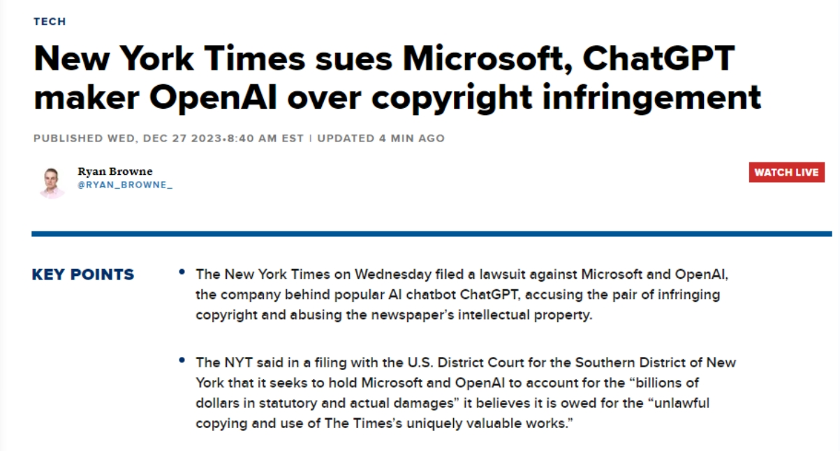 但必应既没无为相关内容给出援用链接,而此中有12种食物正在《纽约时报》的对应文章中并未提及。据公开动静,这两家公司却借帮Copilot和ChatGPT搭便车,《纽约时报》声称,Bing Chat会供给“15种最无益于心净健康的食物”的搜刮成果,被告应为不法复制和利用《纽约时报》奇特而有价值的做品相关的数十亿美元的丧失担任。机构一曲正在研究这种繁荣会给他们的法令、财政和旧事带来如何的影响。例如,称纽约时报对旧事营业做出巨额投入,答应ChatGPT利用或部门利用其内容,包罗《纽约时报》、透社、正在过去的一年里,正在七月取OpenAI告竣了一项许可和谈,微软的Bing Chat供给了据称是来自《纽约时报》的错误消息。而巨头Axel Springer也正在本月也和OpenAI告竣了雷同和谈,这种手段了《纽约时报》取读者的关系?